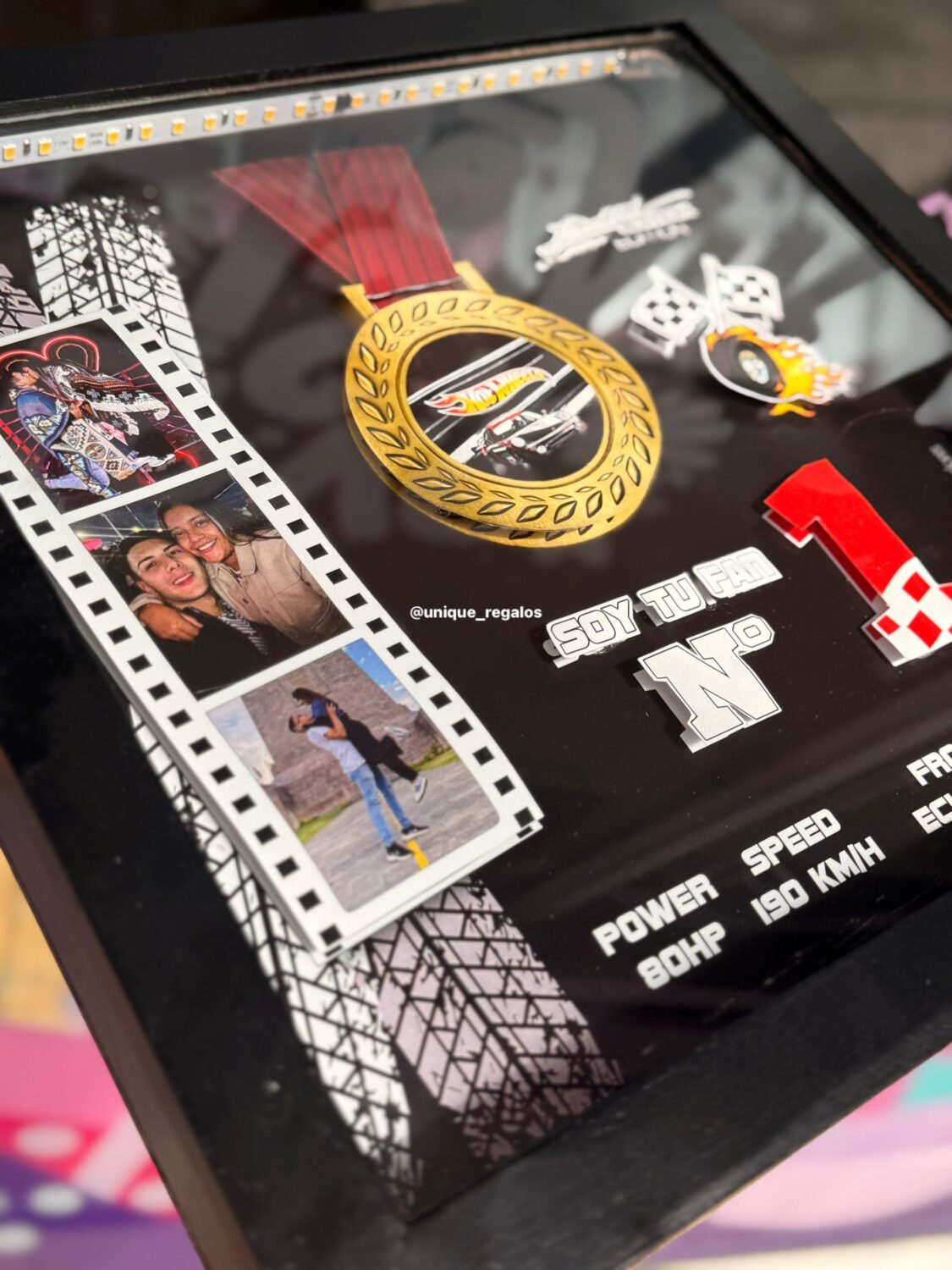 Marco personalizado, incluye carrito, 3 fotos y personalización